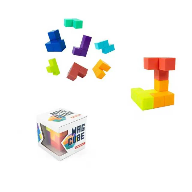 Löse den Würfel oder kreiere eigene lustige Figuren! Set besteht aus 7 Kunststoffteilen mit beweglichen Neodymagneten in assortierten Farben.